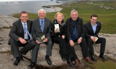 Deputy Joe McHugh, TD., Cllr Bernard McGuinness, Cllr Rena Donaghy, Cllr Mickey Doherty and Cllr Jack Murray pictured at Malin Head for the launch of the new information flyer for tourists.