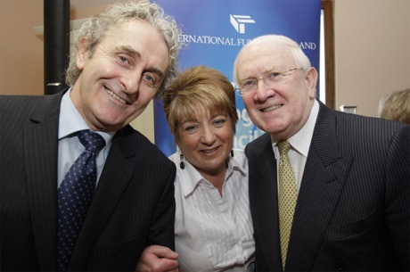 A delighted Teresa McGee, manager of Trinity Court, Newtowncunningham, pictured with International Fund for Ireland development officer, Paddy Harte, and Donegal MEP Pat ' the Cope' Gallagher, at the launch of the Newtown Shared Space Project last Friday.