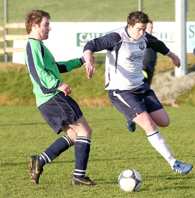 Illies FC...1 (K. O’Donnell 4 mins) Buncrana Hearts Reserves...1 (O. O’Flaherty 1 mins) Report by Inishowen Independent THERE was little to separate local rivals Illies and Buncrana Hearts on a windy day at Stranaclea Road. Two goals in an explosive opening four minute period suggested that the substantial crowd were in for a real goal fest, but the wind made for difficult playing conditions and good chances, other than pot shots from outside the box that rattled the woodwork, were few and far between for the rest of the game. In form striker Oisin O’Flaherty opened the scoring within moments of the kick-off when Illies centre half Aidan Doherty miscued a clearance and two touches from the Buncrana striker took him into the penalty area where he hammered an unstoppable shot into the bottom left corner. Playing into the teeth of a strong wind, it was the perfect start for the side managed by Buncrana USL striker Gerard McLaughlin. |