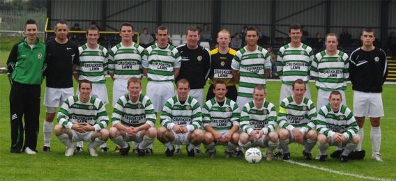 After the final whistle, the Cockhill players and management gathered in front of the scoreboard for a souvenir photograph, as did the group of around 30 fans that made the 350-mile round trip from Buncrana for the game, and they deserved their moment of glory as they were the better team on the night.