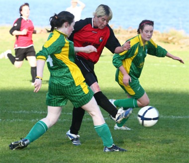 With stand-in keeper Danielle Carey between the posts, Moville Celtic could not handle the superior guile and power of Stevens, who played on the shoulder of the home defence, running through on goal on numerous occasions.