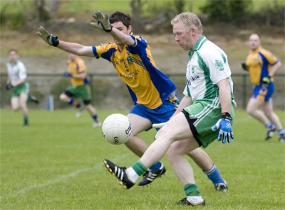 A goalmouth scramble saw Stephen Gillespie’s attempted clearance ricochet off one of his defenders and into the net – David Dolan lashing it home to make sure. The impressive Michael Ward had time to raise the white flag one last time to complete Aodh Ruadh’s impressive 1-6 second-half tally.