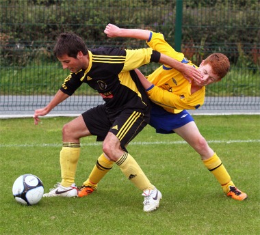 Gathering Dermot McGlynn’s slide rule pass, Ciaran McGrory then fired straight at Dunree keeper McGettigan from a tight angle before the visitors almost stole an equaliser with the last action of the first-half. Latching onto a long ball, Thomas McKinlay skipped clear and rounded Aileach keeper Paul McGettigan but home defender Neil McElhinney brilliantly blocked on the line.