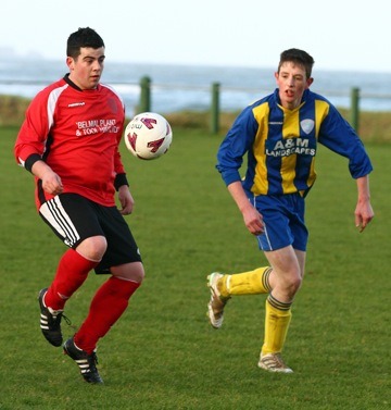 determined home side though. The visitors were first to show when David O’Connor found space to drill a low shot just wide of Carrowmenagh keeper Mark Doherty’s right hand post. The home team upped the pace then and Mark McGonigle fired over from the edge of the area before Samuel Bredin fired narrowly wide. James McDermott then blazed over the top before at the other end Derek Doherty fired just over from the edge of the area. Culdaff went close again on 31 minutes when Martin McGrenaghan’s powerful header was brilliantly saved by Doherty diving to his right. Before the break Gerard Gill for the home side had a crisp 25-yards effort well saved low to his right by George Houten. The visitors hit the crucial goal on 55 minutes after Declan Noone released Derek Doherty to fire a low shot from fifteen yards past Doherty. Carrowmena responded and Gill had an effort saved by Houten before the same player had a free kick well saved. |