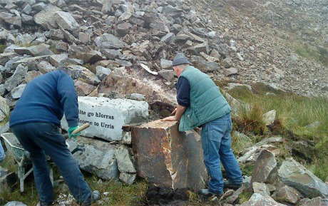 The group again called on the services of local volunteer stone masons, Richie Dick, Charlie Hagan, Neil Jimmy Sean and labourers Paul Kelly and John Joe Doherty with a little help from committee members. Thomas McConway also gave his digger and his time freely. The new rock was also once again engraved free of charge by Devlin Memorials, Bridgend.