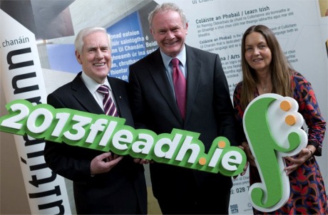 Senator Labhrás Ó Murchú, Martin McGuinness MLA and Eibhlín Ní Dhochartaigh at the official launch of the Derry bid for the All Ireland Fleadh.