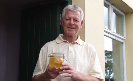 Neily Doherty with the discarded orange left by Rory McIlroy during his visit last year to Ballyliffin Golf Club.