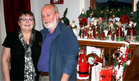 Jean Hegarty and husband Hugo surrounded by examples of Jean's vast collection of Santas. (Photos: Michael Doherty)