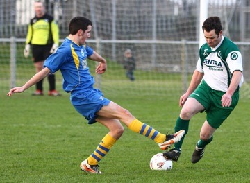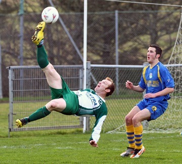 got an important flick to head the ball to safety. Eddie McIntyre drew a good save from Peter Devlin from a 20th minute free kick, and McElhinney’s follow up looping header was comfortably collected by the Clonmany keeper. Aileach were pinned into their own half for much of remainder of the first half, with Clonmany probing and patiently seeking an opening to unlock the visitor defence. While Michael Devlin, Mark McLaughlin and Jason Devlin all showed good movement, they failed to find a way though the Aileach rearguard where Damian Barr and especially Declan O’Donnell impressed. Clonmany’s best chance of the first half came just after the half hour when Jason Devlin crossed and brother Brendan controlled the ball just on the 18 yard line. Brendan delayed his shot as a couple of Aileach defenders dived in to block him, but his shot flew just wide of the right hand post. Mark McLaughlin fired over from 20 yards on 38 minutes, and Brendan Devlin directed a 42nd minute header on target, but the delivery he’d taken had no pace on it and his header fell comfortably into McGeady’s grateful arms. Aileach did have one chance on the stroke of half time when the busy Eddie McIntyre put Ciaran Craig through. The midfielder shimmied left and then right, but his right-footed shot was straight at the keeper. THE SECOND HALF started with a bang with James Gillespie breaking the deadlock and drilling an accurate shot past the Clonmany keeper to give Aileach a 1-0 lead in the 47th minute. Brian Treacy and Anthony Doherty kept up the pressure from the visitors and combined to set up Eddie McIntyre five minutes later, but the striker’s shot flew over the bar. Clonmany were still dangerous and not about to hand up their league crown without a fight. Brendan Devlin headed inches wide at the front post from a corner on the hour mark, and the veteran Clonmany striker had a shot blocked by Cathal McElhinney shortly afterwards. Damian Barr too had to be alert to block Brendan Devlin on 69 minutes and Aileach could have doubled their lead moments later when keeper Peter Devlin and his right back got all mixed up and clearance broke to Ciaran McGrory 25 yards out, but with the keeper stranded the Aileach striker fluffed his shot and the ball went wide. McGrory was a bit unlucky with that attempt, as was Anthony Shivvey when he flicked a low, driven corner kick across the face of goal and narrowly wide on 71 minutes. They were almost punished when Clonmany created their best chance of the match. Brendan Devlin found space on the left side of the penalty area and lofted a cross over keeper McGeady’s head and into the path of the inrushing Mark McLaughlin, but the right back headed over the bar with an open goal gaping in front of him. It was a bad miss that blighted an otherwise good performance from the right back. Clonmany substitute Jamie Coyle with a header and James Gillespie from a free kick went close at either end as the game entered the final ten minutes. Aileach continued to soak up the pressure, and Clonmany just couldn’t find a way through whether they played it high and long or on the deck. Aileach’s day was spoiled a little when Ciaran Craig picked up a second yellow card following a needless altercation with Clonmany’s Paul McLaughlin late in the five minutes of injury time allowed by referee Terence Moyne. McLaughlin, too, was yellow carded for his part in it the tiff. Clonmany Shamrocks: Peter Devlin; Mark McLaughlin (Alan Friel 87 mins), Liam Hirrell, Philip Devlin (Conor Bradley 50 mins), Michael Grant; Michael Devlin, Raymond McDaid, Steve Harkin, Jason Devlin (Jamie Coyle 71 mins); Paul McLaughlin, Brendan Devlin. Subs not used: Daniel McLaughlin, Jason Doherty. Aileach FC: David McGeady; Dermot Doherty, Damian Barr, Cathal McElhinney, Declan O’Donnell; Anthony Doherty (Dermot McGlynn 90 mins), James Gillespie, Ciaran Craig, Brian Treacy (Conor McShane 65 mins); Ciaran McGrory (Stephen Doherty 82 mins), Eddie McIntyre. Subs not used: Neil McElhinney, Ruairi Bradley. Referee: Terence Moyne. Man-of-the-match Liam Hirrell and Michael Grant were solid in defence for Clonmany, while the Devlin brothers showed good movement up front. But for all their intricate footwork, they couldn’t find a way past a resolute Aileach defence. Bell’s team set themselves up quite defensively, but their central midfielders were largely on top, Declan O’Donnell impressed at right back, but centre half Damian Barr – powerful in the air and composed on the ground – was man of the match. Turning point James Gillespie’s goal just after the restart was the game’s pivotal moment. Clonmany had been on top during the first half, but Aileach hit them early in the second half and, boosted by the goal, were pretty comfortable for the remainder of the game. While Clonmany did create one good chance before the end, but Aileach were very solid in the back and deserved their win. Ref watch Terence Moyne was authoritative and composed, talking to the players and management and explaining his decisions. He had to issue a few yellow cards, but the game was played in an honest, sporting manner. Ciaran Craig got involved in an off the ball altercation late on, leaving Moyne with no option but to issue a second yellow and then a red card. For full coverage of all your weekend sport, read the Inishowen Independent. |