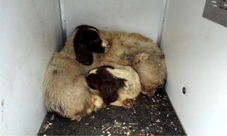 Weak and neglected...some of the neglected spaniel pups huddled together after they were rescued in Co Donegal in January.