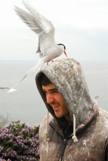 takes a peck at BirdWatch Ireland warden Brian Burke