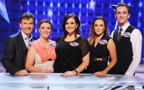 Daniel and Majella O'Donnell pictured on Family Fortunes with from left Daniel's niece Trish Doogan and Majella's children Siobhan and Michael.