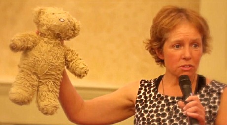 Rose Kelly from Moville introduces Teddy for Peace at a Just a Second seminar run by Action from Ireland (Afri).