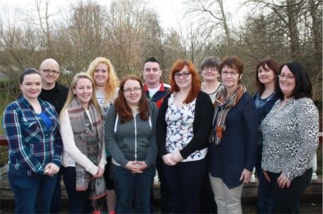 Donegal Foróige volunteers, from from left, Aoife Nielson, Christine Doherty, Michelle Gillespie, Shauna Gildea, Joanne Doherty and Marie Moyne. Back row, from left, Peter Lanne, Megan Jennings, Foróige regional youth officer Gary Duffy, Geraldine Bonner and Cecelia Sheridan. The group is pictured at the recent 46th annual Foróige Volunteers Conference.