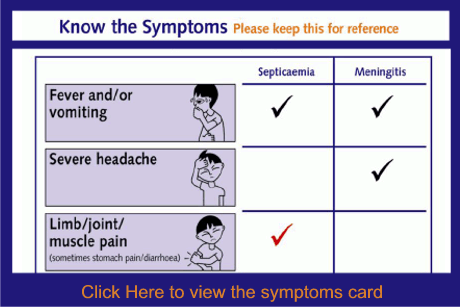 To get more information or to order your free symptoms card please visit www.meningitis.org or call our Dublin office on 01 819 6931 or Freefone helpline on 1800 41 33 44.