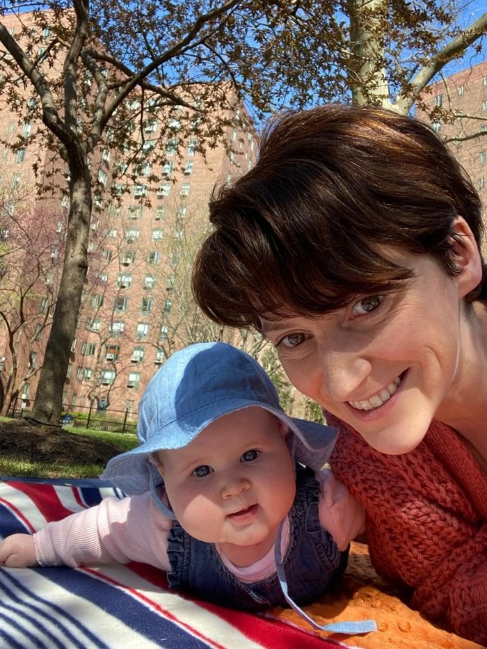 Maria McElhinney and her daughter Fiadh Saunders who joined Spraoi agus Sport's Baby Massage and Music from their home in New York.