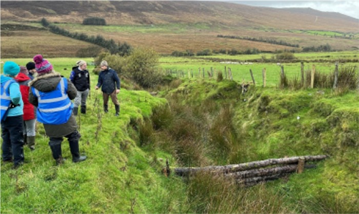 Ambassador Mallard inspecting the natural flood management project in Adderville, Clonmany.