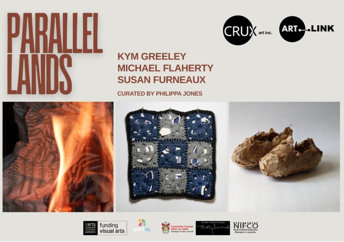 PARALLEL Lands brings together new works by Newfoundland artists Michael Flaherty, Susan Furneaux, and Kym Greeley, curated by Philippa Jones as part of the international partnership between Artlink with CRUX (Newfoundland, Canada). Their works reflect a deep dialogue with the land and sea, revealing how Ireland and Newfoundland, divided by the Atlantic, are bound by parallel histories of settlement, loss, resilience, and belonging.