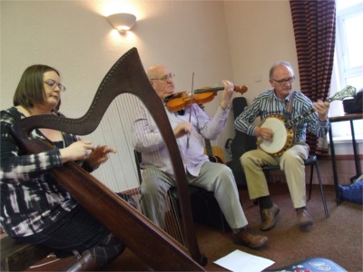 Buncrana fiddle player Dinny McLaughlin and friends provide the music for the pre-show reception.
