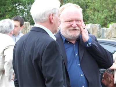 Buncrana playwright Frank McGuinness chats with John O'Donnell as he arrives for the ceremony to confer him with the freedom of his hometown.