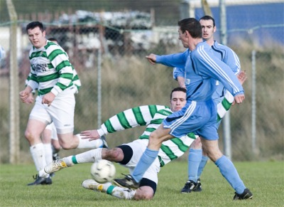 The first chance fell to the home side when Rashenny keeper Kieran spilled a cross. The ball fell to Aidan Porter but with defenders between him and the empty goal line, he lofted his shot just over the bar.