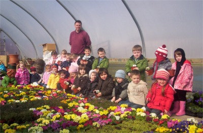 Children from Greencastle Community Childcare Centre on a recent visit to Moville Garden Centre. Also pictured is centre owner, John Mullen.