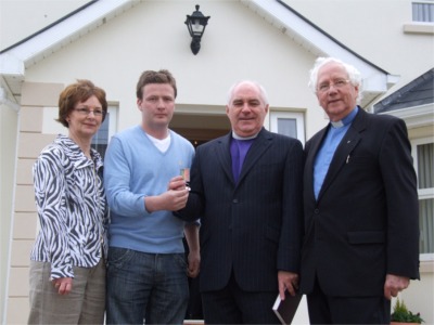 Inishowen builder Keith McGrory of Keithlin Developments hands over the keys to the new Moville Manse to Metodist President Aian Ferguson. Also pictured are Denise McCandless and Inishowen Methodist minister, Rev Eric Lawson.