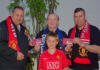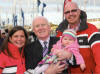 European election candidate Pat 'the Cope' Gallagher pictured with Marlene and Martin Doherty and their six month old baby Susan from Dungloe, Co Donegal at the Ocean Volvo Race festival in Galway city.