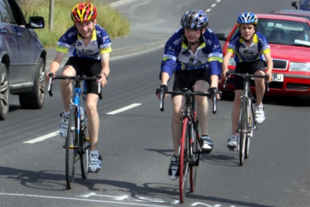 North Pole Cycling Club's younger members finish with a smile. Philip Dignan and Brendan Duffy. Left to right, Christy Doherty, Sean Reilly and Willie Monaghan. Philip Dignan pictured with Willie John McLaughlin. Philip Dignan relaxes with fellow cyclists. Some of the experienced cyclists get ready for the off. Enjoying the tea and refreshments in St Mura's school. Paddy McCallion sprints for the line. Joe Alexander leads this group up the hill in Ballyliffin. Barney O'Donnell, Brendan Duffy and Willie John McLaughlin congratulate each other on making it over the line.