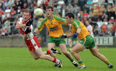Other than the man-to-man marking on the Bradley boys, the Donegal defence employed a zonal system, where space rather than direct opponents were marked. The defensive unit was supported by midfielders Kevin Cassidy and Brendan Boyle, and half forwards Rory Kavanagh and Conal Dunne. Donegal regularly had ten men inside their own 45, denying space to the Derry forwards who had hit 3-16 against Monaghan a week earlier.
