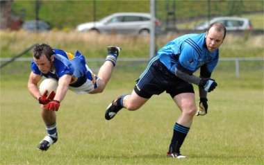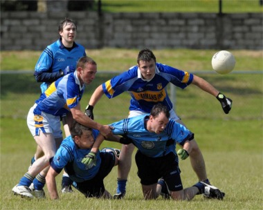 With a gale blowing across the pitch and a heavy shower just as the game got under way, both teams struggled to come to terms with conditions. Milford had the ball in the net early on, but the effort was ruled out for an infringement on the keeper. But they got their first goal in the sixth minute when Chris Bradley struck a penalty kick into the bottom right corner. Points from Paul Sweeney and Davy Curley had them five clear before Aidan Lynch sent over a booming free kick from 45m out for the home side.