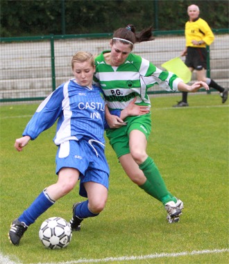 Greencastle...5 (Niamh McLaughlin 7&66, Niamh Hegarty 26&35, Loirin Melarkey 20) Cockhill...1 (Louise Porter 41) by Simon McGeady, Inishowen Independent, at Maginn Park GREENCASTLE have completed one part of what they hope will be a league and cup double with this comprehensive victory at Maginn Park on Sunday evening. Cockhill were no match for Paddy Hannon’s team on the night as Greencastle turned on the style on the big stage. Cockhill, who were without their starting goalkeeper and sweeper, looked out of sorts. Perhaps the defeat to Greencastle earlier in the week, which ended their hopes of lifting the league, had left the St Mary’s Park side a little demoralised. |
