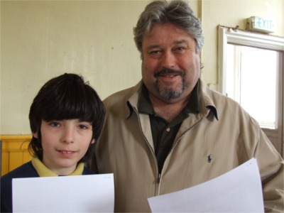 Sean Rea, Priestown, Carndonagh and his son Patrick, 11, try out for the auditions.