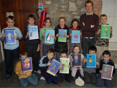 Artlink Crazy Comics class with Tyrone illustrator Barry Falls. Back Row L to R: David Irwin, Thomas Stainsby, Niamh Brennan, Claire Duffy, Annie Doherty, illustrator Barry Falls and Pawel Wojtach. Front Row L to R: John Doherty, Shaun Fletcher, Conor Barrett, Emer Brennan, Luke Clifford and Turlough Brennan.