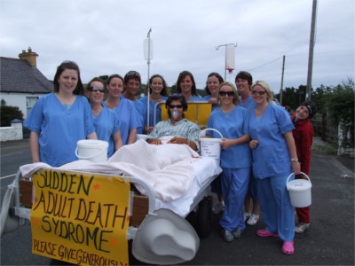 Bed-pushing for charity from Greencastle to Moville in aid of Sudden Death Syndrome.