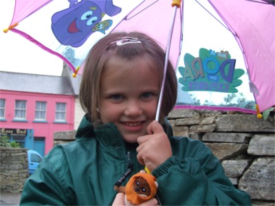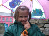 Four year old Roisin Harkin from Buncrana takes cover during the 'Give it a Swirl Day' for volunteers in Carndonagh.