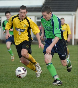 With Illies labouring unsuccessfully to make headway against the mobile Castlebar backline, chances were at a premium for the Inishowen men, however William McLaughlin did enjoy limited success along the left wing and on 28 minutes he cut into the visitors box but his finesse-free cross struck a yellow shirted defender at he near post.