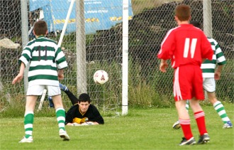 over Moville in cracking contest Carndonagh...4 (Darragh Canny 2, Eanna Newton, Denis Hegarty) Moville...2 (Sean Doherty, Conor McLaughlin) Report: Inishowen Independent TWO late second half goals sealed the U16 Cup final for Carndonagh on Sunday night, but Moville who had fought back from the devastating blow of conceding a goal in the first minute, will wonder if things might have been different had they not chalked up injuries to key players at vital times. Certainly the loss in the first half of Conor McLaughlin was a huge blow to the Moville lads who had fought back gamely after Carn had taken the lead following a blistering start. There was only a minute on the clock when a Darragh Canny stole in at the back post to hammer home from a corner, and while Sean Diver in the Moville goal did his best to beat the ball away, referee’s assistant Billy Porter raised his flag to signal that the ball had crossed the line. |