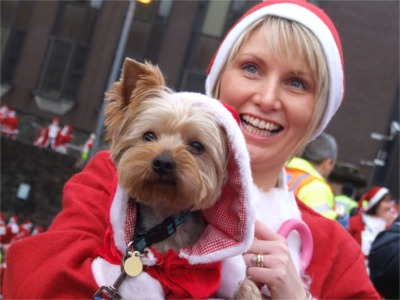 December 2007 - Santas World Record Breaker. Andrena Arbuckle, Waterside with pooch Sam.