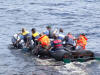 A local oarsman takes the plunge for Liam Collins Hardware as raft mates look on.
