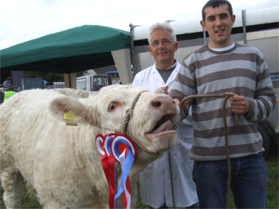 Willie John McElchar, Ballylast, Lifford with his son Damien and their prize-winning Charolais female calf. The calf was pedigree winner and overall show winner.