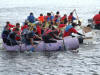 Malin Luxury Homes raft team gear up for the race...from left, Sean McGonagle, Malin, Gerard and Declan McCole, Malin and Barry Diver, Gleneely. Visitors Veronica McDermott and Kathleen Gordon, Manchester, enjoy the spectacle from Malin Bridge. Gridlock at the Malin Raft Race starting line. Sue and John Doherty, Coolcross, Clonmany via England. Paddling for glory at the annual race. Phelim McCallion, Carn, and son Daniel, 6, enjoy the craic. The crowds gather to watch the start of the race. Breda Doherty, Gleneely with daughter Ellie, 4, enjoy the sunshine. Hawaii-Five-Oh! The girls try to outpaddle the boys. Seamus and Angela Devlin, Illies, Buncrana, with their sons Shane, 12, and Kyle, 9.