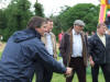 Redcastle F.C., manager, Brian Bell, in the stocks for the sponge-throwing competition.